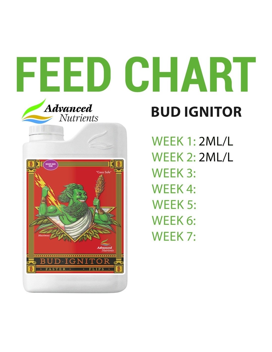 BUD IGNITOR est un stimulateur de floraison de très haute qualité, basé sur la formulation liquide d'un ancien produit de la marque : le Bud Blood associé à une version du VHO (Very High Output) dédié à la floraison qui rend les distances internodales plus courtes, ce qui permet d'augmenter le nombres de noeuds par tige, et donc de bourgeons.